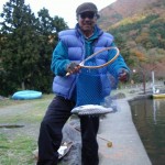 実釣中の鈴木さん・・釣り上げた38cmのマス・・40cmupはこの日は望めませんでした!